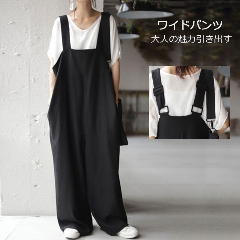 ワイドパンツ サロペット オールインワンパンツ オールインワン レディース サロペットパンツ パンツドレス オーバーオール ガウチョパンツ 体型カバー 着痩せ きれ ゆったり