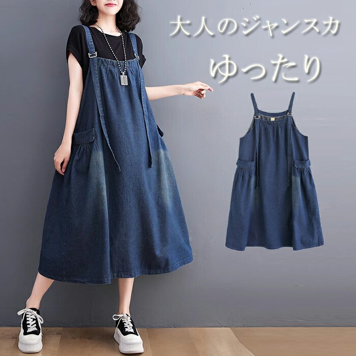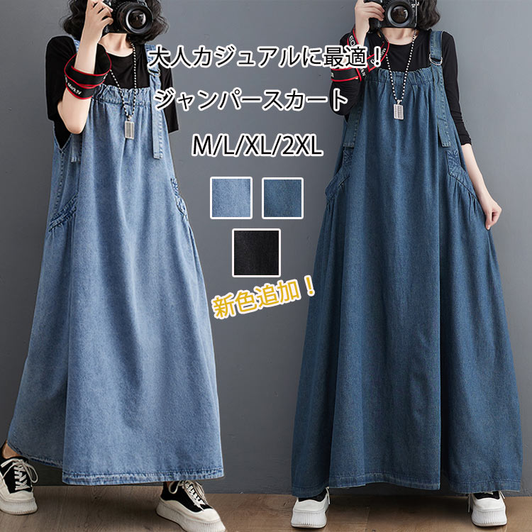ジャンパースカート デニム サロペット ワンピース 夏 ロング丈 ゆったり 大きいサイズ