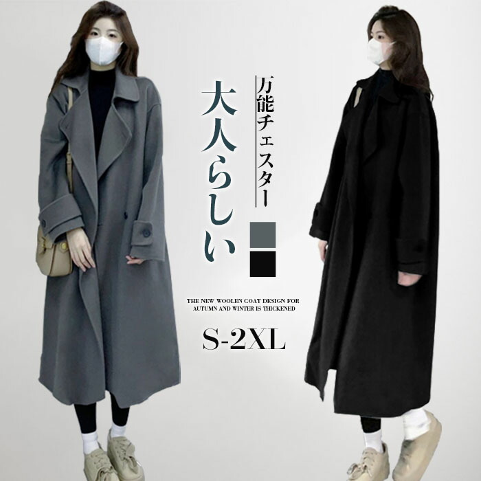 チェスターコート コート ロングコート レディース チェスター アウター ジャケット ロング丈 ゆったり きれいめ 黒 大きいサイズ 冬 秋 ロング 長袖 薄手 無地 暖かい 通勤 おしゃれ