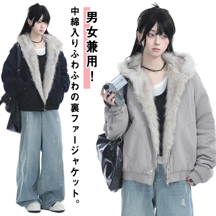 ファージャケット レデイース メンズ MA-1 ショート丈 ジャンパー 裏ファー アウター フェイクファー 裏起毛 春 秋冬 厚手 コート 中綿ジャケット モコモコ ふわふわ ファー付き フード付き