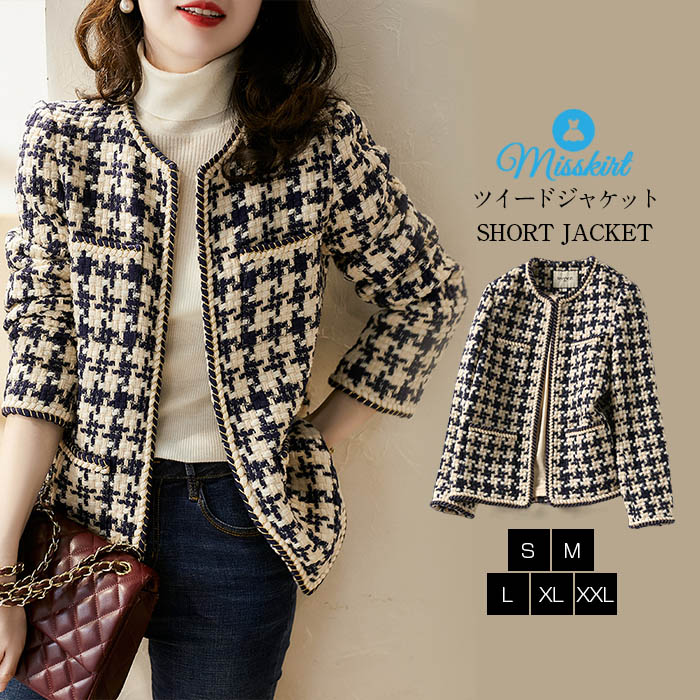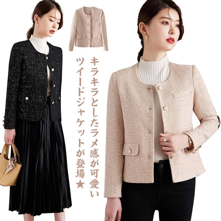 ジャケット レディース アウター ツイード カーディガン ノーカラージャケット ショート丈 長袖 フォーマル春 秋 冬 オフィス 通勤 OL 大人 フォーマル 結婚式 卒園式 卒業式 入園式 入学式