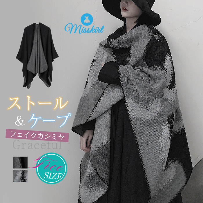 【送料無料◎メール便発送】フェイクカシミヤ コート ノースリーブ ロング丈 ドルマンスリーブ レディース アウター グラデーション マント ケープ ゆったり 秋 冬 トップス 無地