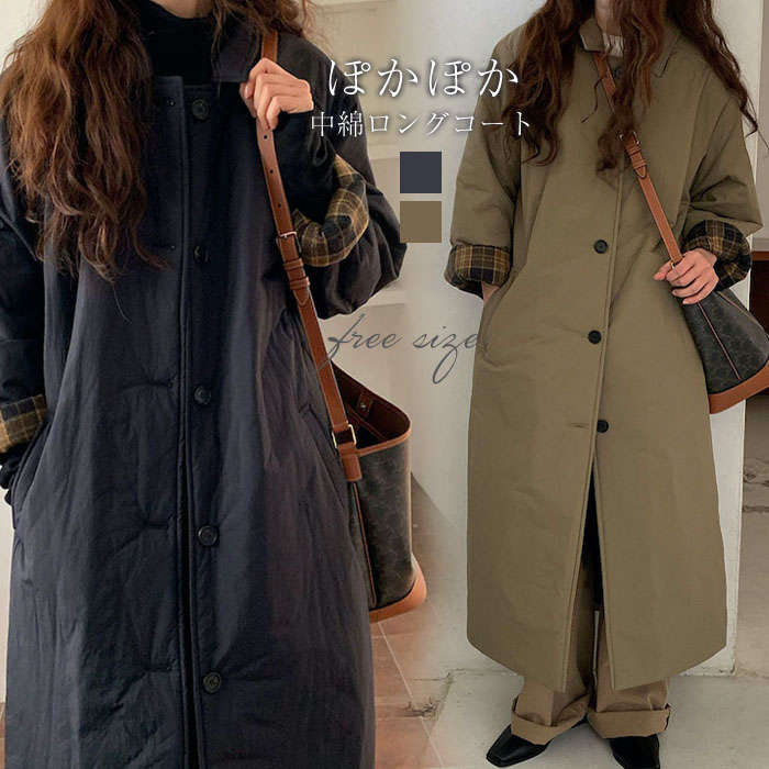 冬 秋 あったか 防寒 着回し シンプル ゆったり 大人 大きいサイズ ふんわり コート ロング アウタートレン 中綿コート