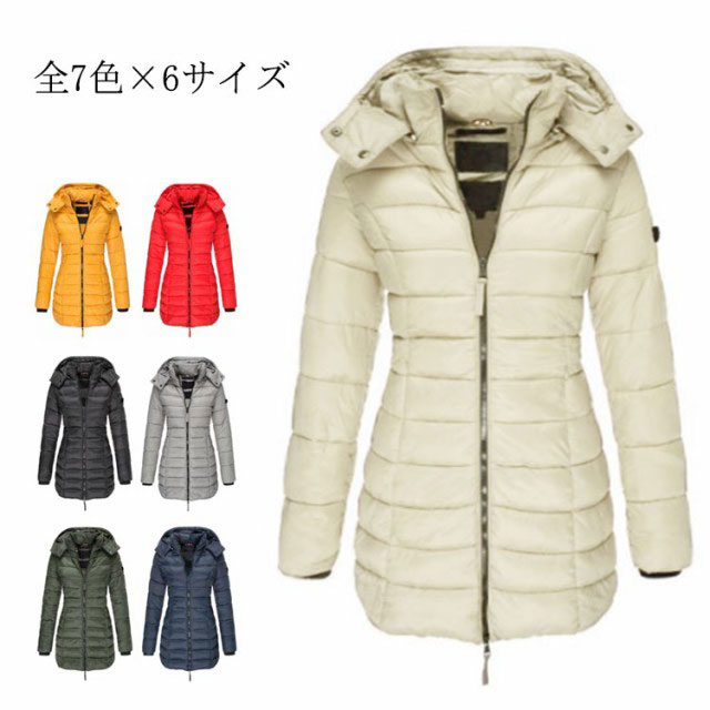 ロング丈 中綿コート ロング中綿ジャケット 無地 フード付き 防寒 レディース 暖かい 大きいサイズ ジャンパー 通勤 ベンチコート オフィス アウトドア 杏色 イエロー レッ カジュアル