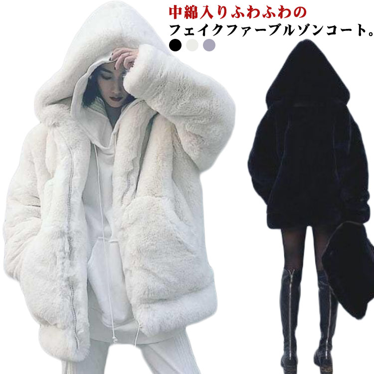 ファージャケット レデイース フェイクファーコート ボアジャケット 毛皮コート エコファー 秋冬 ブルゾン モコモコ ふわふわ フード付き 羽織り 防寒 中綿あり アウター 毛皮アウター 軽量 ファー