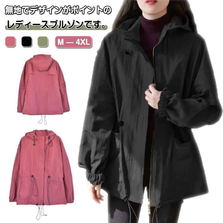 春 薄手 スプリングコート ブルゾン 長袖 レディース トップス フード付き マウンテンパーカー ライトアウター 羽織り 大きいサイズ ジャケット 着痩せ 体型カバー 着回し力 秋