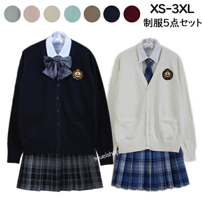 制服 女子高生 学校制服 春秋冬用 スクール カーディガン 蝶ネクタイ シャツ スカート 高校 学生 中学 学生服 学校 私服 通学 卒業式 女の子 大きいサイズ 制服5点セット スーツ