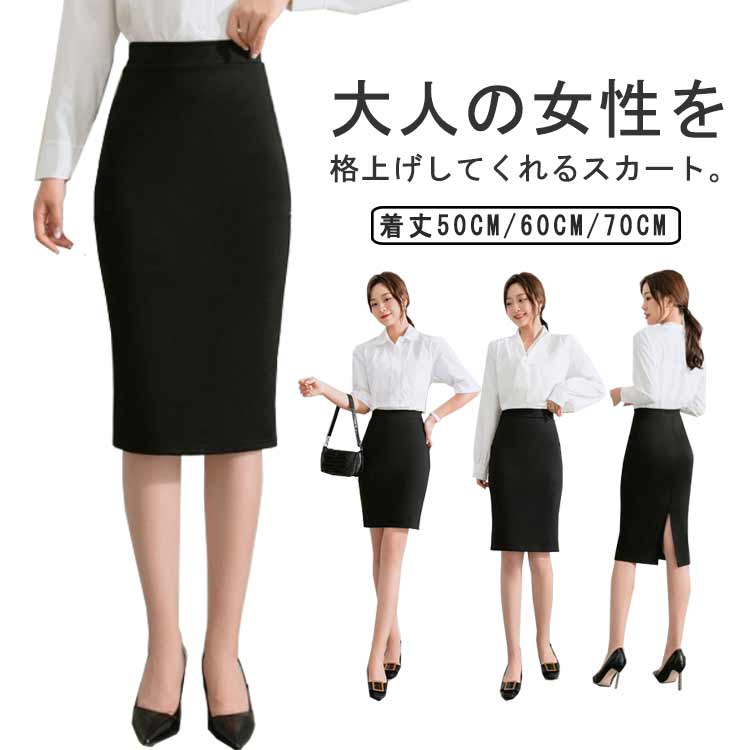 タイトスカート 面接 黒 着丈50cm 60cm 70cm ウエストゴム スリット入り 仕事用 ビジネス レディース 通勤 ミニスカート 膝丈 シフォン ハイウエスト ボトムス スリム