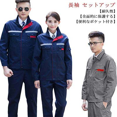 反射材テープ付き 作業服 上下セット セットアップ 通気性良い 男女兼用 作業着 長袖 大きいサイズ 作業服ワークマン ワークウェア レディース メンズ ユニフォーム ジャケット 耐磨耗