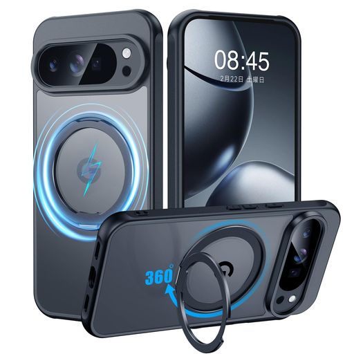 GooglePixel10 10Pro用ケースMagSafe対応リング360°回転スタンド機能縦横両対応半透明黄ばみ防止ワイヤレス充電レンズ保護耐衝撃携帯カバー