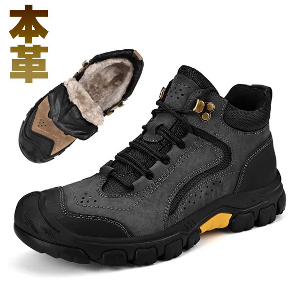 ハイキングシューズ トレッキングシューズ 防滑 裏起毛 本革 アウトドア キャンプ シューズ カジュアル ブラック グレイ 通気性
