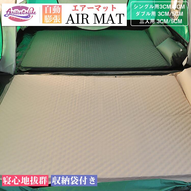 3人用 厚み5cm コンパクト キャンプマット エアーマット 連結可能 枕付き 自動膨張式 収納袋付き 寝袋 折りたたみ マットレス キャンピングマット エアマット アウトドア 登 寝袋マット
