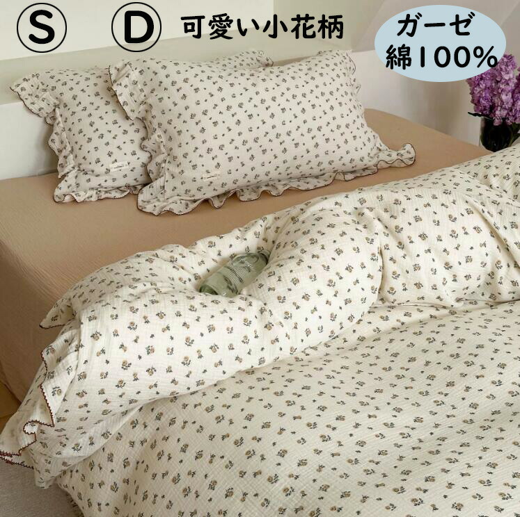 布団カバーセット 二重ガーゼ 綿100% 可愛い 小花柄 フリル 韓国風 柔らかい 肌に優しい シングル ダブル ボックスシーツ フラットシーツ 単品 枕カバー 3点セット 4点セット 掛け布団カバー