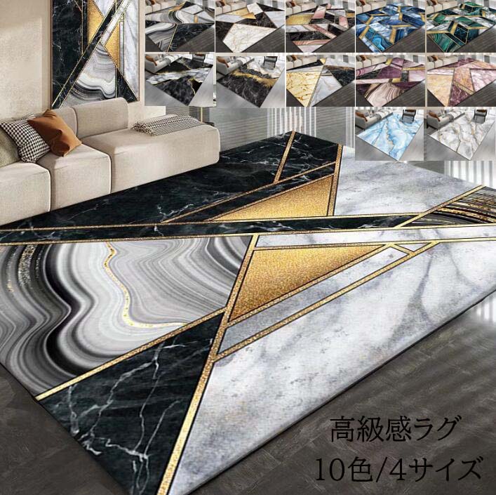 ラグ おしゃれカーペット 長方形 大理石調 上質感 ラグマット 洗濯機可 滑り止め 120*160 140*200 160*230 180*260cmモダン 高級感 リビング お洒落 じゅうたん 寝室