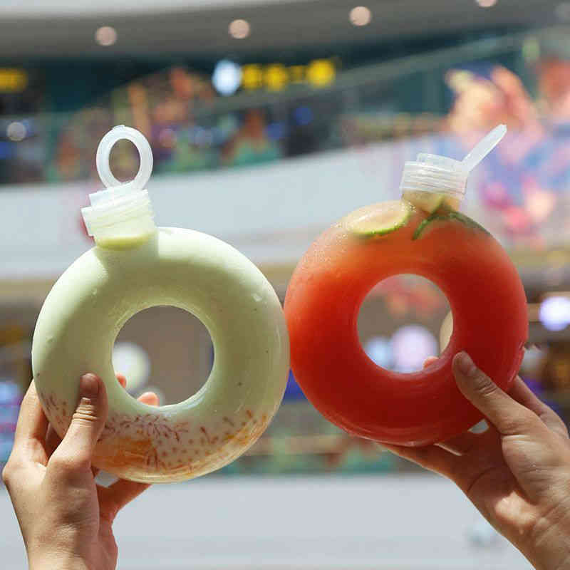 ドーナツ かわいい おもしろ タピオカドリンク クリアボトル プラボトル プラスチックボトル PETボトル アップルフタ付き 10個 テイクアウトタピオカカップ 紙カップ