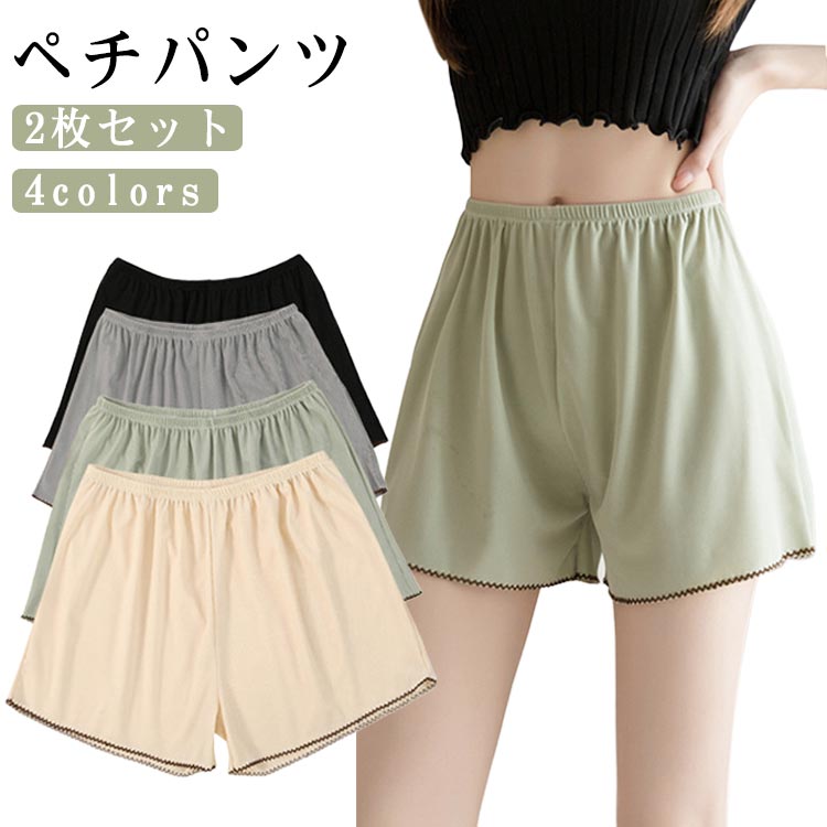 インナーパンツ レディース 2枚セット ペチパン 夏用 シンプル スカート ペチパンツ ペチコート ショート 涼しい ワンピース 快適 通気性 薄手 ウエストゴム 夏 春 透け パンツ