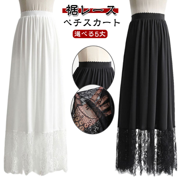 ペチコート スカート レディース ロング丈 ぺチスカート 裾レース 透けない 静電気防止 透け防止 ドレス ワンピース インナー レイヤード 重ね着 体型カバー ロングスカート 和装 インナースカート