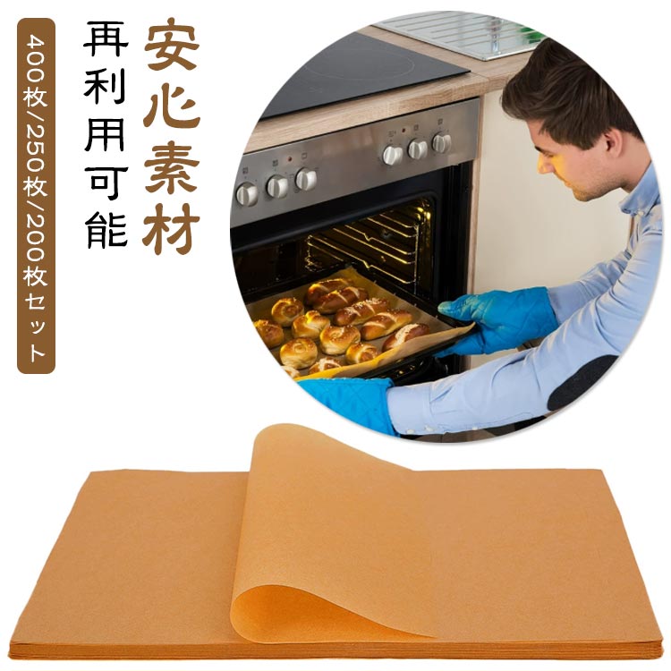 400枚 250枚 200枚セット 角型 無添加 クッキングペーパー 耐熱 オーブン ナチュラル クッキングシート 無漂白 未晒 クラフト紙 オーブンシート ベーキング 料理 フライ 蒸し 耐 グリル