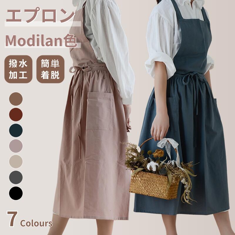 【200円クーポン有】作業用 透けない ナチュラル エプロン おしゃれ ワンピース 綿100% 新登場 撥水加工 色 北欧風シンプルなデザイン、コットン素材のエプロン 北欧風