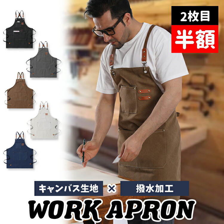 ワークエプロン 作業エプロン キャンバス デニム おしゃれ 無地 シンプル 首掛け エプロン 店 超撥水 大掃除 飲食業 レストラン 業務用 ポケット 厚手 格安 黒 カフェ ユニフォーム