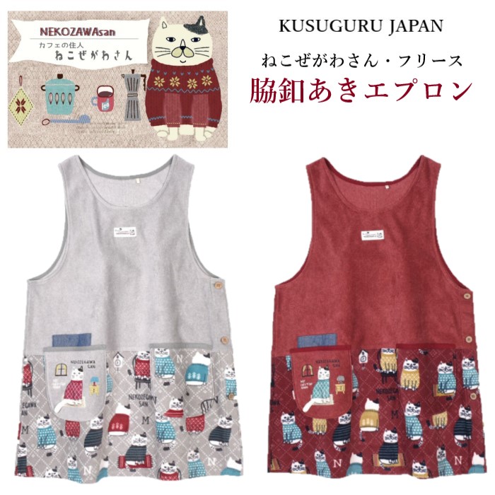 フリース エプロン クスグルジャパン ねこぜがわさん 脇釦あき ネコ カフェ 猫 雑貨 グッズ プレゼント 家事 保育士 母の日 敬老の日 お礼 お祝い クリスマス ギフト プレゼン 誕生日