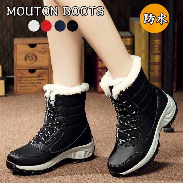 ムートンブーツ レディース スノーブーツ 防水 裏起毛 防寒靴 おしゃれ ミドルブーツ ショートブーツ 厚底 レースアップ 編み上げラウンドトゥ 滑らない 履きやすい 歩きやすい 可愛い