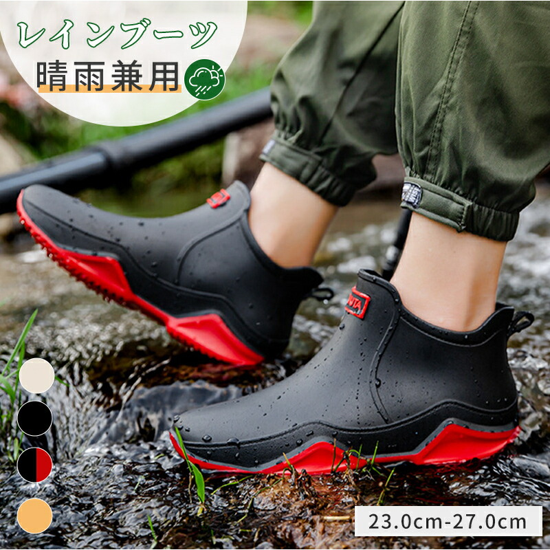 レインシューズ 完全防水 レインブーツ レディース メンズ ショートブーツ 晴雨兼用 雨 雪 台風 雨靴 農作業 釣り 園芸 作業 ブラック 大きいサイズ 23.0cm-27.0cm 着脱簡単