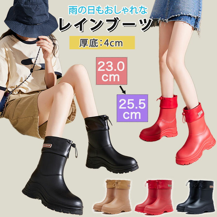 レインブーツ レディース 厚底レインブーツ 4cmヒール 完全防水 長靴 履きやすい 防滑 雨 おしゃれ レインシューズ ミドル丈 ショート 雨晴れ兼用 滑りにくい シンプル ロングブーツ 雨対策
