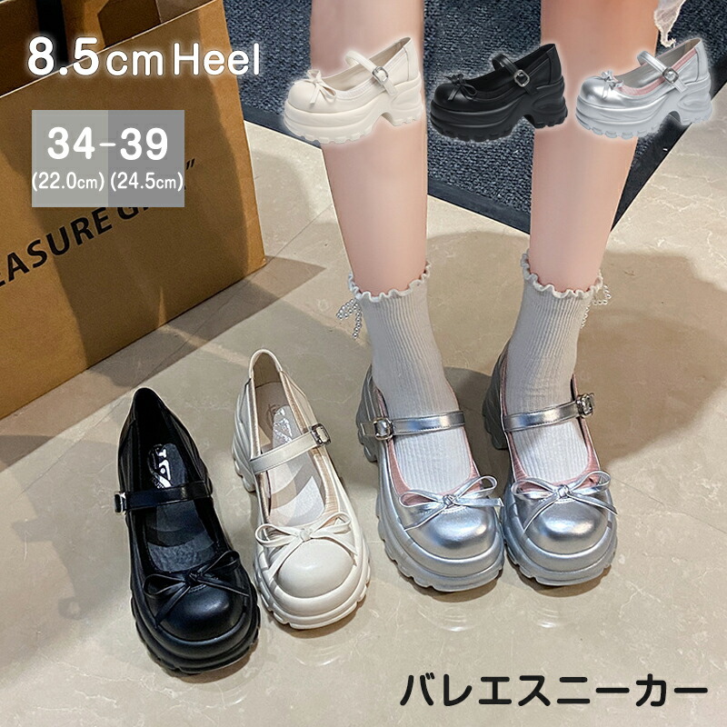 バレエパンプス レディース 厚底シューズ バレエスニーカー 8.5cmヒール 秋 ローファー パンプス バレエ風 リボン付き ストラップシューズ 歩きやすい くつ 身長アップ 厚底靴 ロー 履きやすい