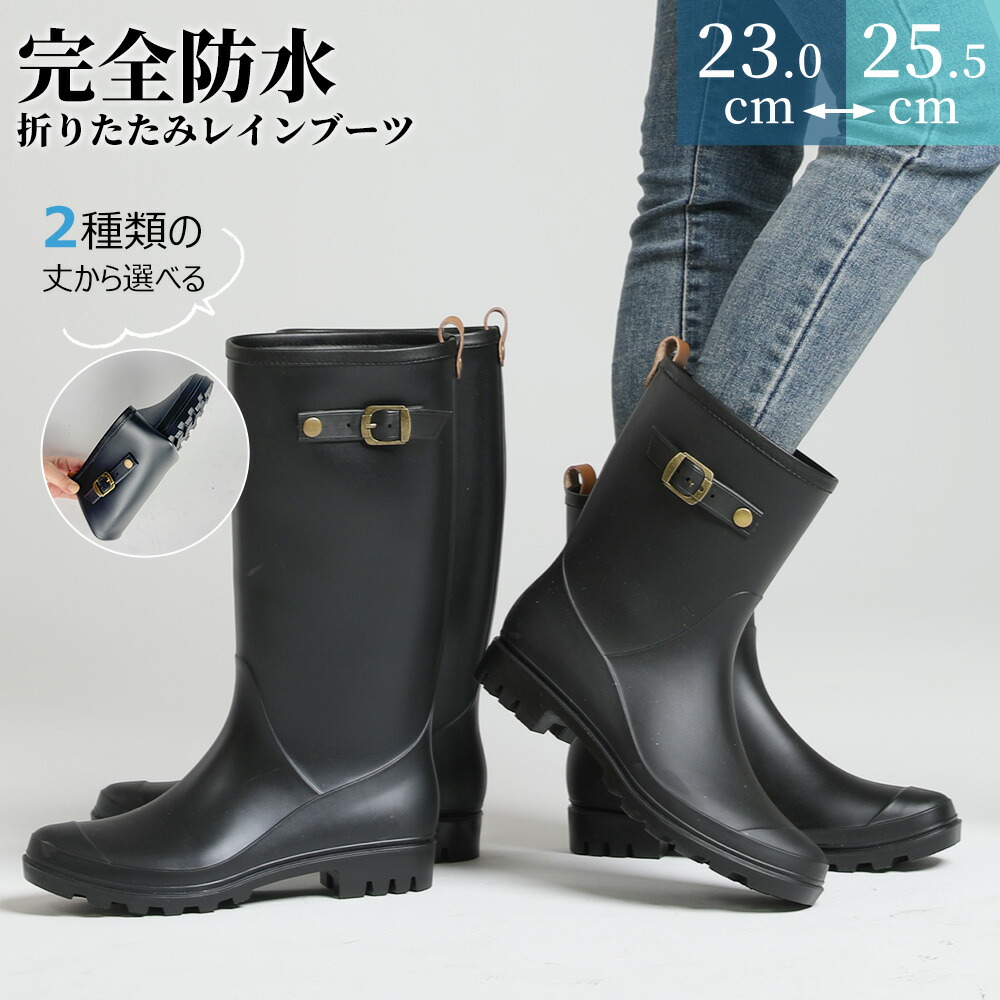 レインブーツ 長靴 レディース 晴雨兼用 完全防水 ミドルブーツ レインシューズ キャンプ アウトドア ガーデニング 農作業 釣り 園芸 ブラック 2E相当 23.0cm-25.5cm 作業