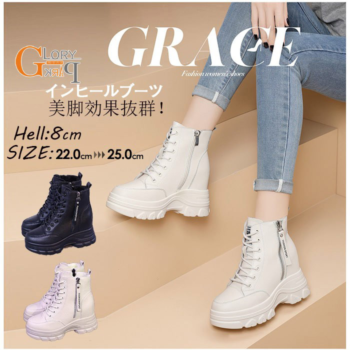 厚底ブーツ レディース ハイカット スニーカー 編み上げブーツ 黒 レースアップ ブーツ ウエッジソール 歩きやすい 厚底 ショートブーツ ヒール5cm 快適 ストレッチ 秋 靴 ホワイト ミドル 冬