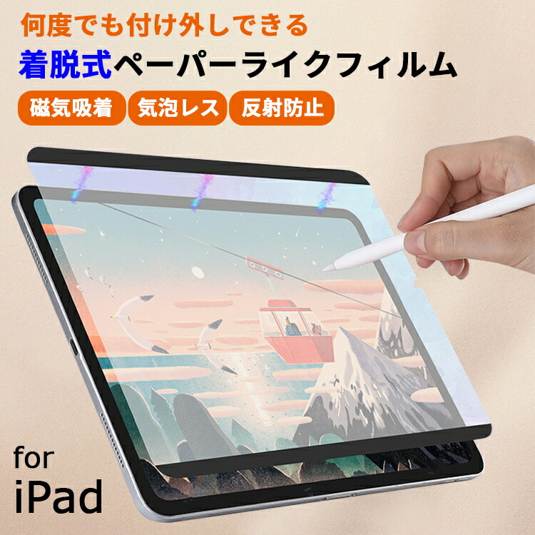 着脱式 ペーパーライクフィルム iPad Air 11インチ Pro 13インチ M2 M3 M4 M5 A16 第11世代 第10世代 Air5 Air4 mini6 mini7