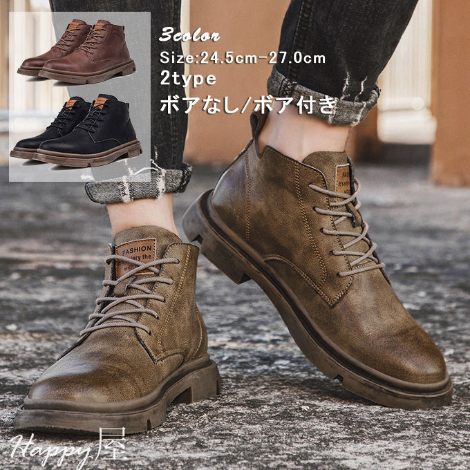 ショートブーツ メンズブーツ バイクブーツ ワークブーツ エンジニアブーツ 2タイプ ボアなしボア付き 厚手 冬 暖かい 男性用ブーツ 通学 秋冬 新作 通勤