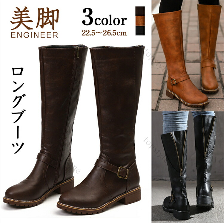 ロングブーツ ブーツ レディース ロング エンジニアブーツ エンジニア シンプル 疲れない チャンキーヒール 防寒 靴 キャメル ブラウン ブラック 22.5~26.5