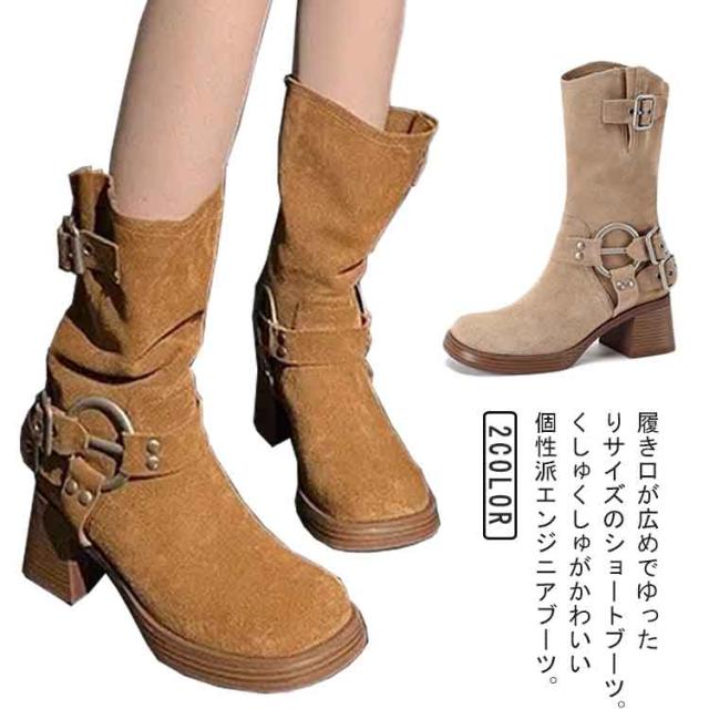 ブーツ レディース ショートブーツ ミドルブーツ エンジニアブーツ 厚底 5 太ヒール チャンキーヒール 秋 冬 ブーツ 走れるブーツ 大きいサイズ 通学 通勤 20代 30代 40代