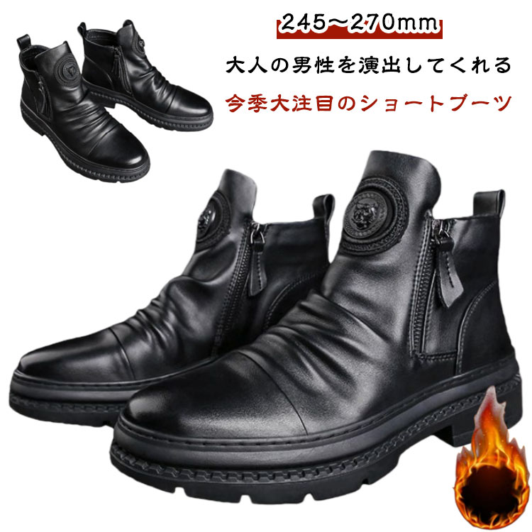 ショートブーツ メンズ ブーツ メンズブーツ サイドジップ ショート丈 紳士靴 ワークブーツ 大人 男性 履きやすい 滑り止め 靴 メンズシューズ 革靴 おしゃれ ビジネス 通勤 歩きやす カジュアル