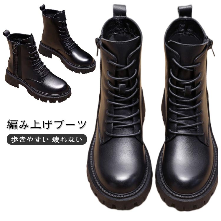 ショートブーツ サイドファスナー 編み上げ ブーツ レディース 厚底靴