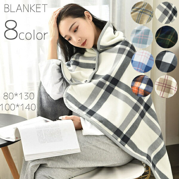 ブランケット 大判 男女兼用 肩掛け ポンチョ 80x130cm 100x140cm エアコン対策 ひざ掛け 北欧 着る毛布 羽織る 裏起毛 防寒 膝かけ ボタン付き 毛布 夏 あったか ふんわり 冬