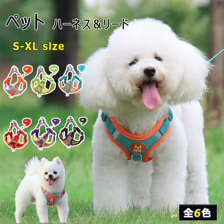 犬用 ハーネス 小型犬用 リード 2点セット ペット用品 小型犬 全6色 S M L XL リード長さ約1.5m ベストハーネス胴輪簡単着脱 長さ簡単調節 D環 内側ソフトパッド バックル