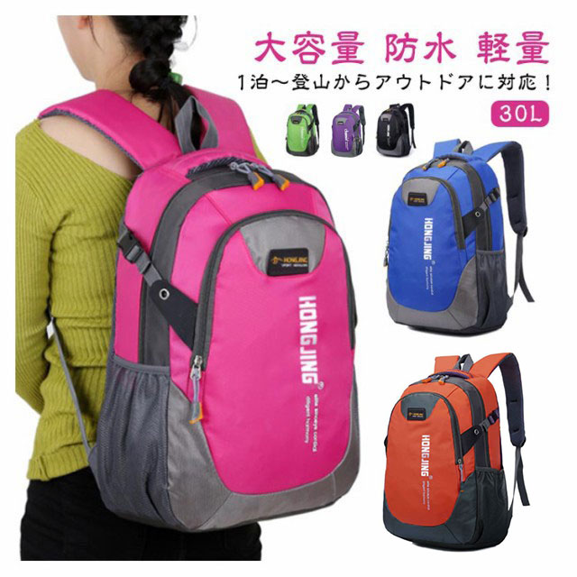 登山から防災まで対応する軽量30リュック。撥水加工でアウトドアや日常使いに便利。
