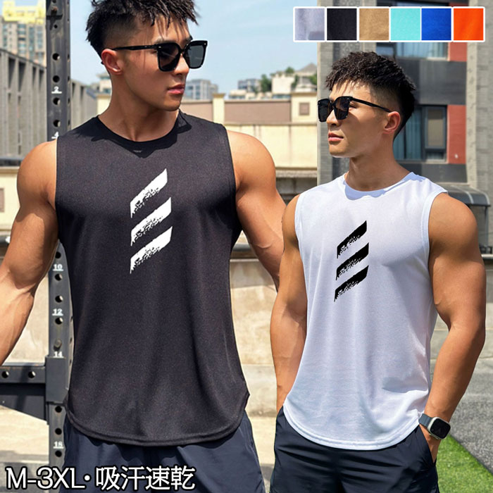 おしゃれなタンクトップ メンズ タンクトップ ランニング トレーニングウエア メンズ 袖なし 速乾 吸汗 ランニング 運動 タンク 筋トレ ダイエット ノースリーブ シャツ6色 4サイズ