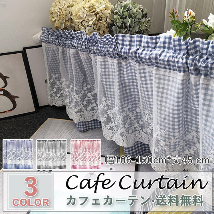 カフェカーテン レース おしゃれ モダン 田園風 一体型 ブルー 遮光 レッド ブラック 既製品 UVカット UV 紫外線カット 小窓 遮像 小窓用 ベッドルーム リビング キッチン エ 部屋アレンジ