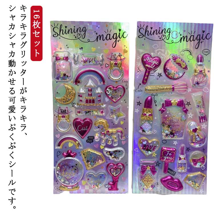 中のスパンコールやビーズが動いて楽しい シャカシャカ3ぷっくりシール ぷくぷくシール 手帳 ノート アルバム カレンダー スマホケース 交換 デコシール ギフト プレゼント