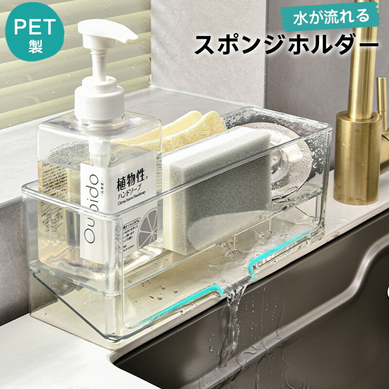 【水切り】スポンジホルダー シンク 大きいスポンジ置き 錆び防止 スポンジラック 取り外し可能です キッチン 洗剤置き 水が流れる スポンジラック 省スペース 約29×9.5×10