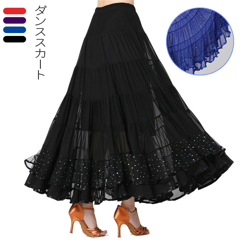 ダンススカート ボリューム 社交ダンススカート フラメンコ ラテンダンス衣装 バレエ シフォン 大人 ロングスカート ボトムス インターナショナルダンス DANCE 練習着 ダンス衣装 社交ダンス衣装