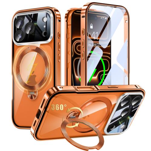 iPhone 17 Pro Max 用 両面 MagSafe対応 ケース アイフォン17プロマックス フルカバー 90°自立 × 360°回転 縦横多角度 Uovon スマホケース ゼンマイ式スタンド