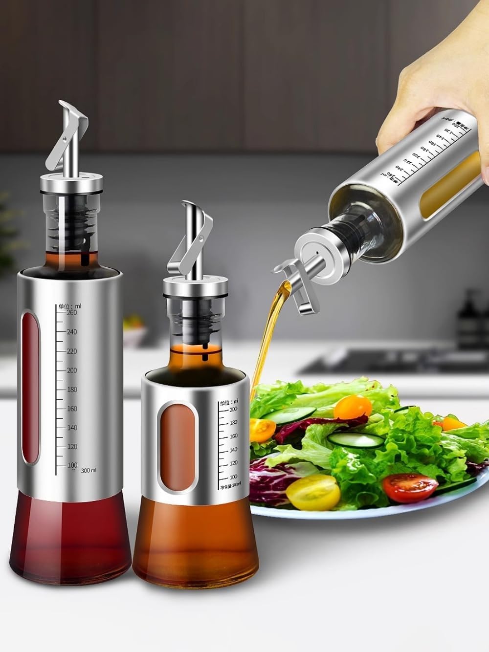 オイルボトル 油差し 液だれしない 醤油差し 酢ボトル ドレッシング ボトル 片手オイル入れ 耐熱ガラス ステンレス オイルポット 油容器 調味料入れ 調味料ボトル 200ml-5 自動的に開の注ぎ口