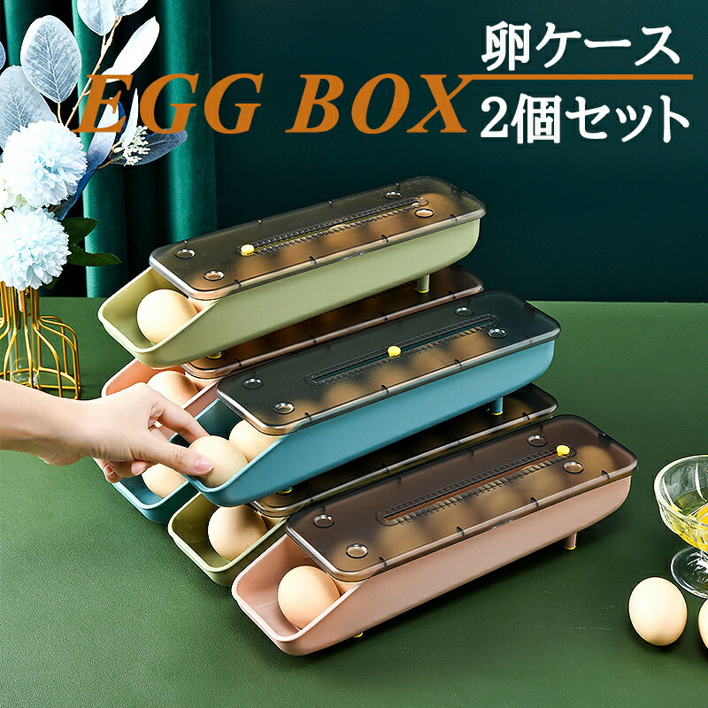 卵ケース 2個セット 卵入れ 冷蔵庫用 数字目盛り 卵入り 卵 7枚収納 収納 たまごケース スリム 玉子 引き出し式 ボルダー 割れ防止 重ね置き 鮮度を保つ -001 省スペース