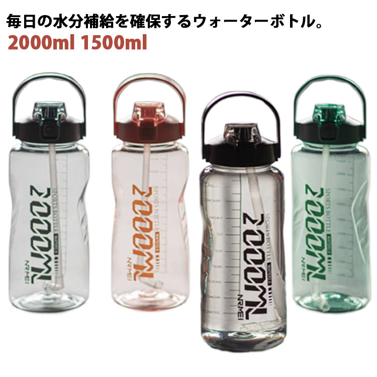 ストロー付き クリア 1.5L 軽量 大人 スポーツボトル 1500ml 2way おしゃれ 目盛り付き 2000ml 水筒 通学 ウォーターボトル 取っ手付き 大容量 アウトドア 直飲み 2L 運動