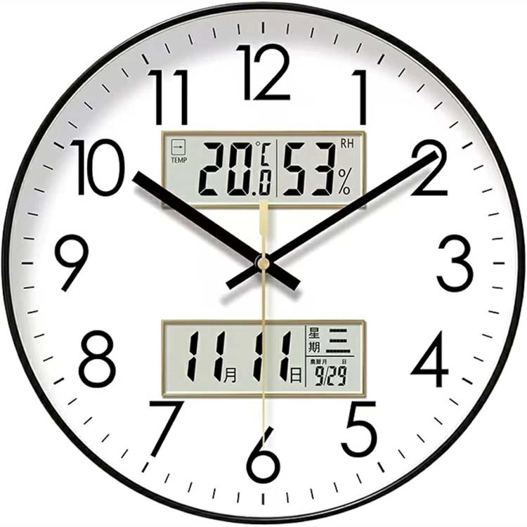 壁掛け時計 アナログ 掛け時計 アナログ 温度 湿度 カレンダー デジタル ディスプレイ 壁掛け時計 静音 連続秒針 電波時計 温度計 湿度計 アナログ 掛時計 おしゃれ デジタル